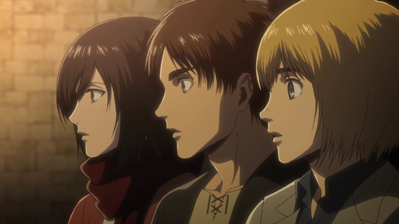 Livaï écoutant Armin, Mikasa et Eren