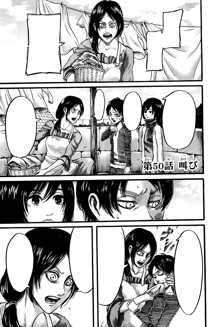 Le Cri (japonais : 叫び, Hepburn : Sakebi?) est le cinquantième chapitre du manga L'Attaque des Titans écrit et illustré par Hajime Isayama.