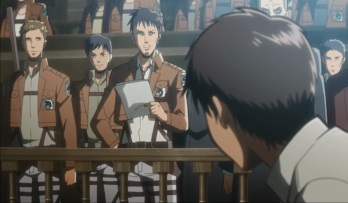 Erwin Smith, 13ème Major, fait la proposition pour qu'Eren devienne un membre de son corps d'armée, et qu'avec ses pouvoirs de titans, ils reprendront à coup sûr le Mur Maria.