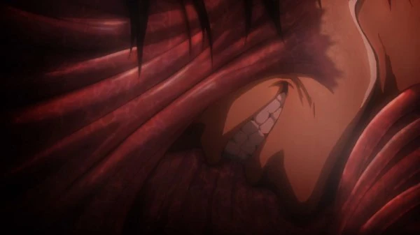 Pendant ces coups violents, Annie a un flashback d'elle avec son père qui lui dit qu'il est désolé et qu'il aimerait qu'elle ne le haïsse pas. Eren est complètement détruit. Annie regarde ce qui reste du visage du Titan Assaillant et satisfaite, reprend sa course vers le mur pour s'échapper. De la fumée se dégage de la tête du titan assaillant. La voix d'Eren se fait entendre. Eren était dans son titan en souriant. Un sourire sadique. Il disait..